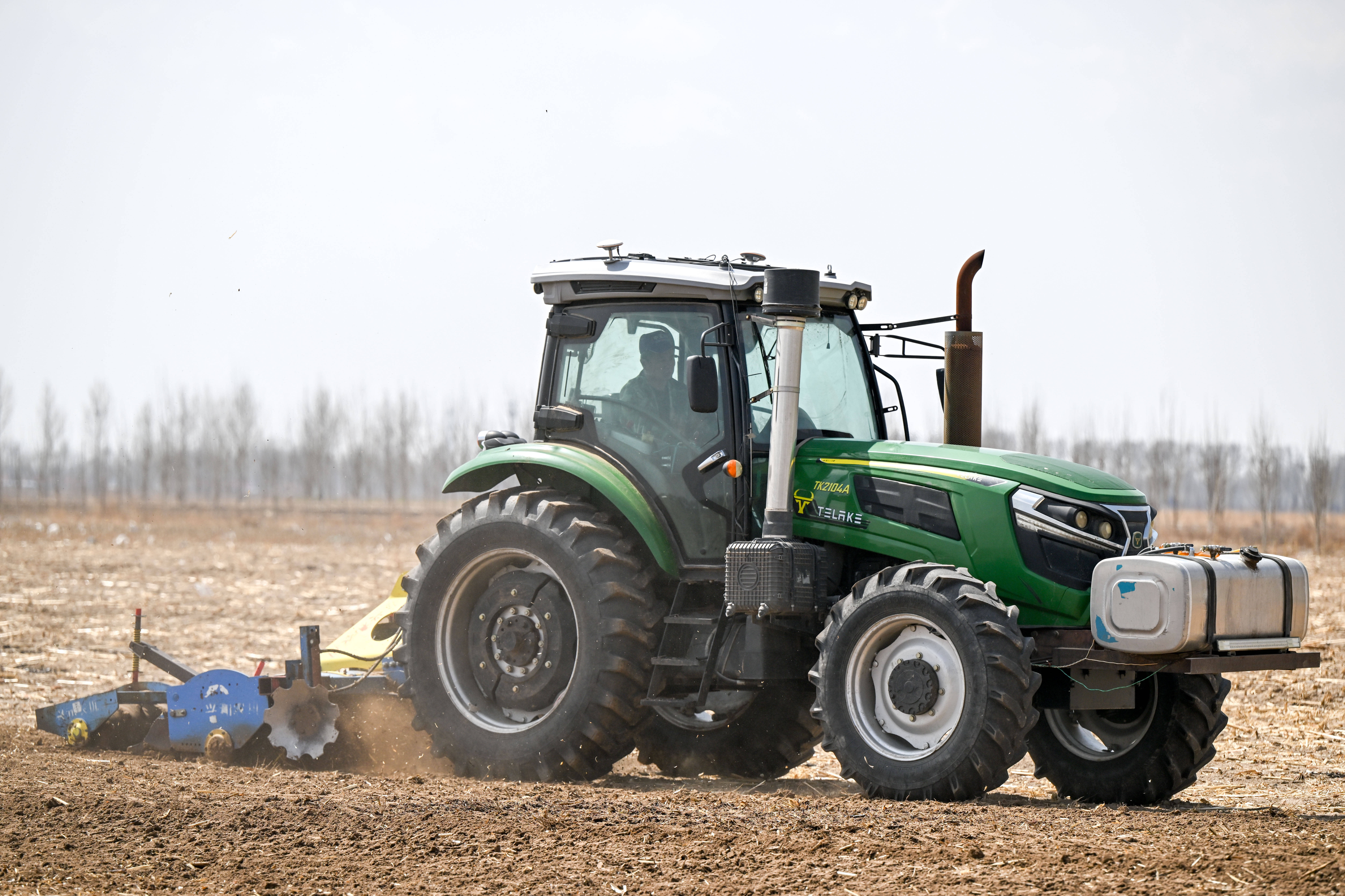 4月17日,在内蒙古通辽市科尔沁区敖力布皋镇,农机手驾驶拖拉机整地。新华社记者 连振 摄田间地头,农技服务同步跟进。敖力布皋镇农业综合保障和服务中心主任黄立军正在地里测试土壤墒情。“今年农时准,墒情好。预计在4月25日全面启动春播,15天内全镇15万亩地就能完成播种。”黄立军说,“如今一亩地播种近6000株,保苗5500株,玉米密植技术已全面铺开。”